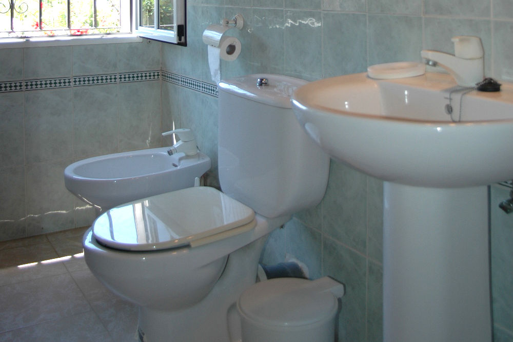 The villa is all on one floor, with a well appointed living/dining room in blue-white marina style, with 2 sofas, satellite-TV, and dining amenities. The independent kitchen is decorated in red and white and comes with all amenities: a 4 ringed vitro hob, microwave, oven, fridge/freezer, dishwasher, and washing machine. There are three bright bedrooms (one double, two singles), a full bathroom, and a shower room with WC.
