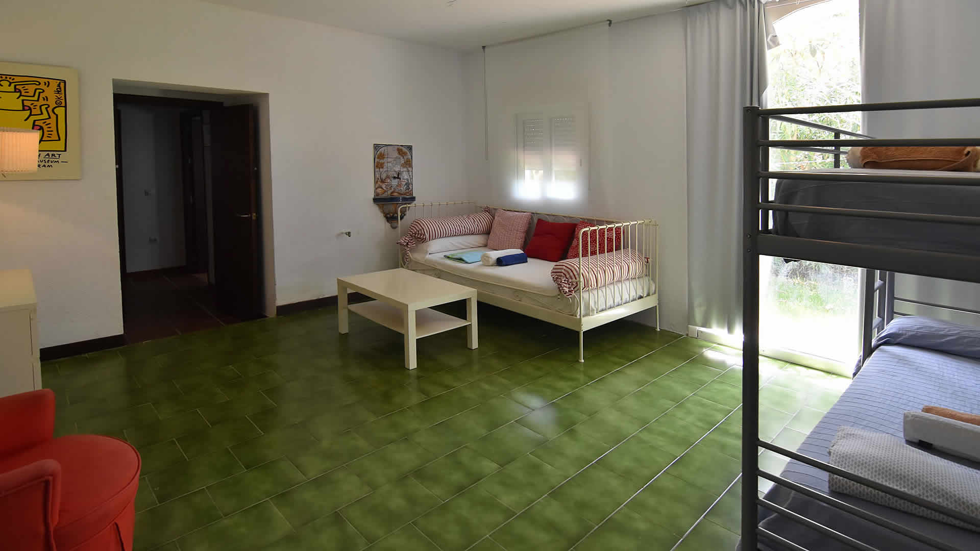 APARTMENT: all rooms are located on the ground floor. There is one double bedroom and a bedroom with bunk beds (for 2 persons) that is accessed through the double bedroom (a nice fit for a family with two children, but not very apt for 2 couples because of the limited privacy). The apartment has its own bathroom.