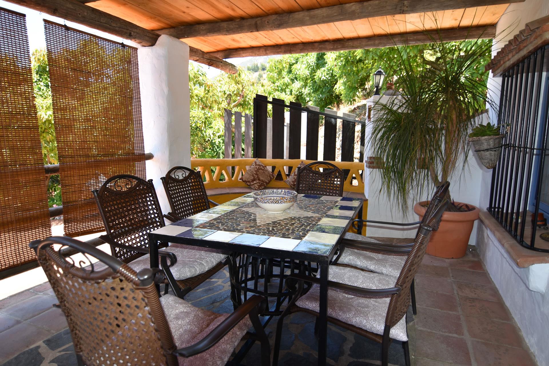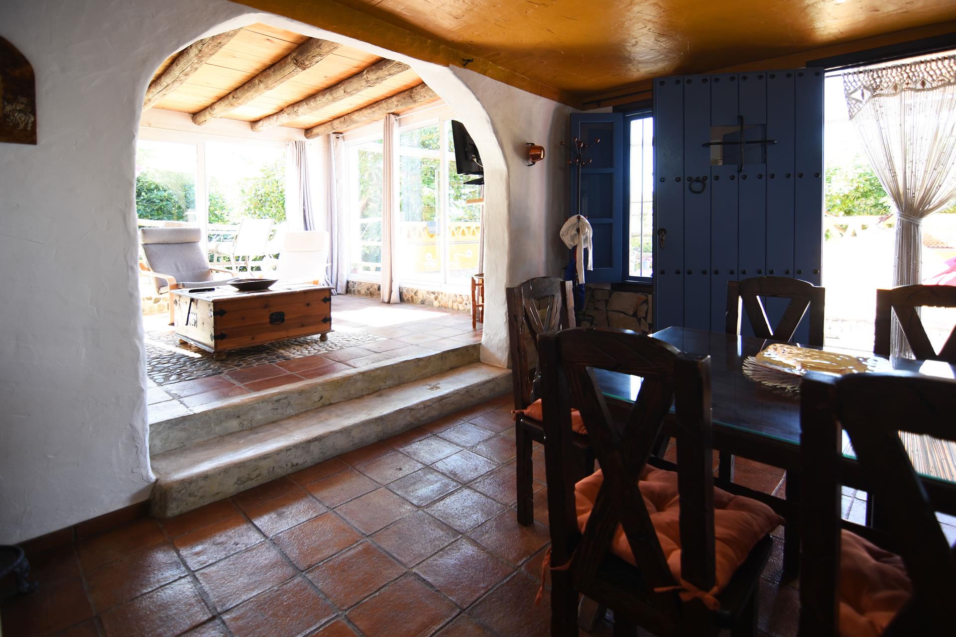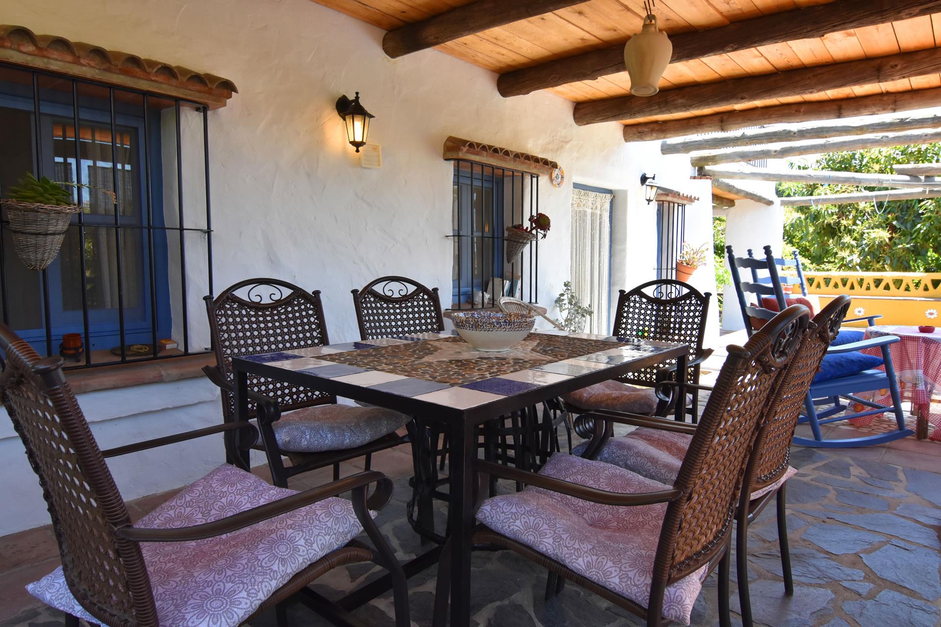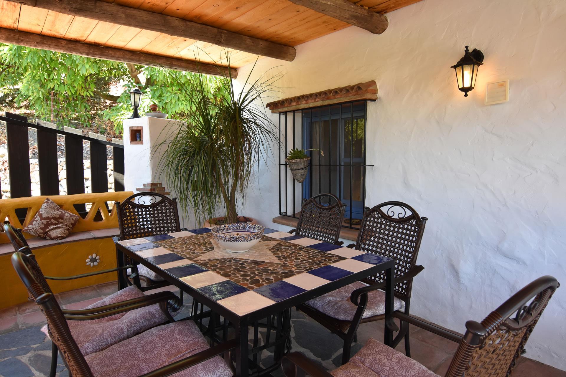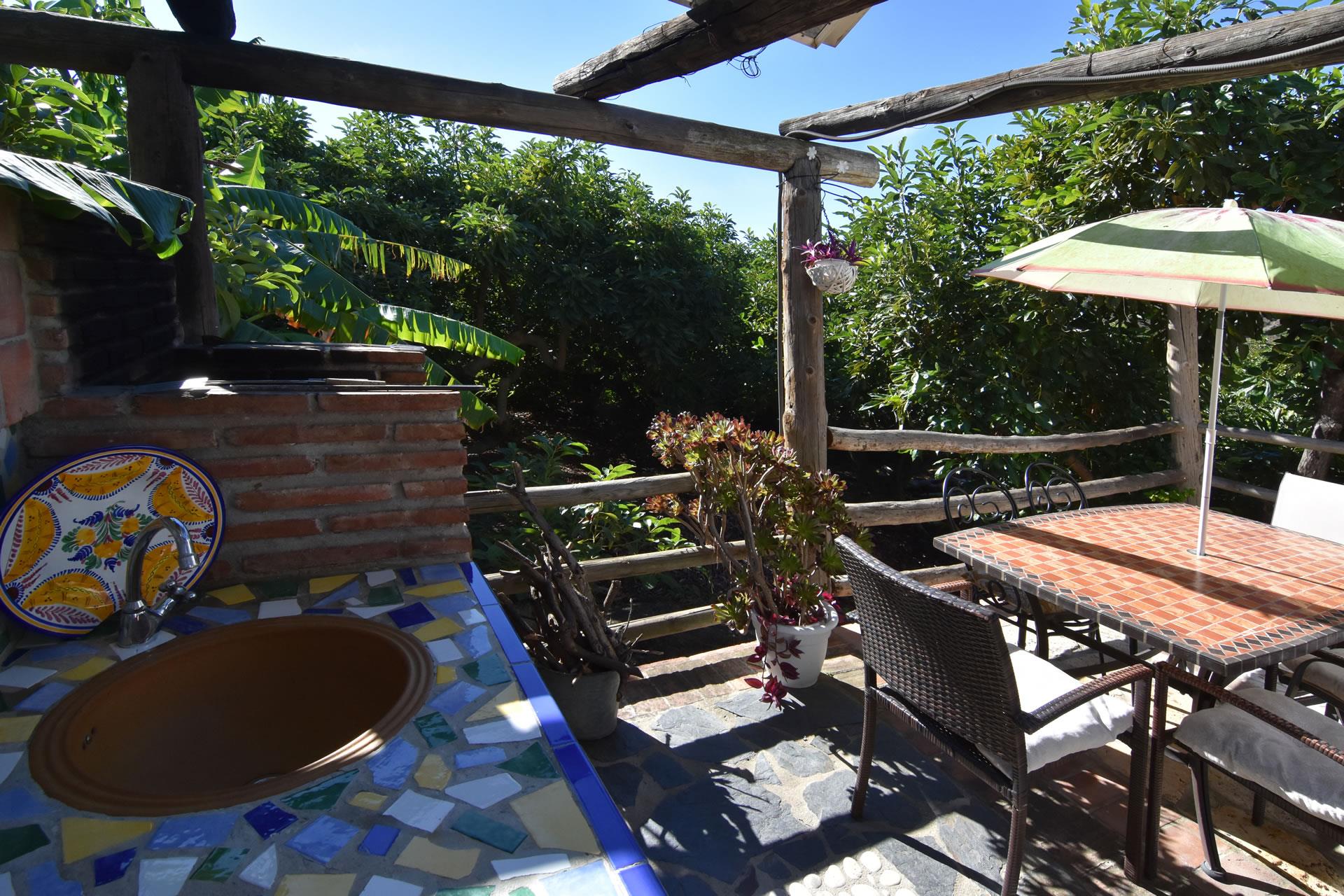 Set in its own grounds, this villa offers you pleasant summer evenings eating al fresco next to the private pool with views to Frigiliana. A large shaded verandah with outdoor furniture in the front of the house provides an area for comfortable al fresco dining. Alongside the house, there is a small summer kitchen with a built-in BBQ and a second dining area with elegant teak furniture.