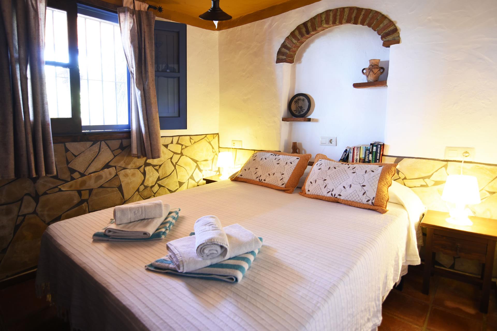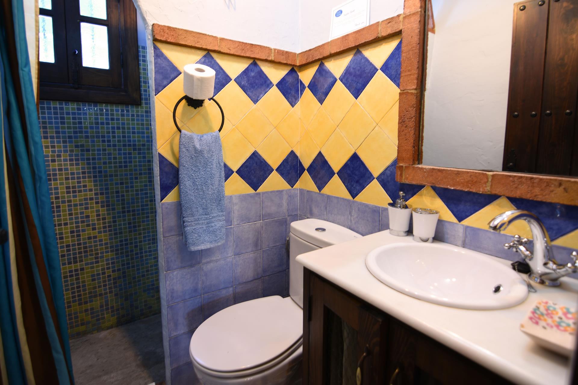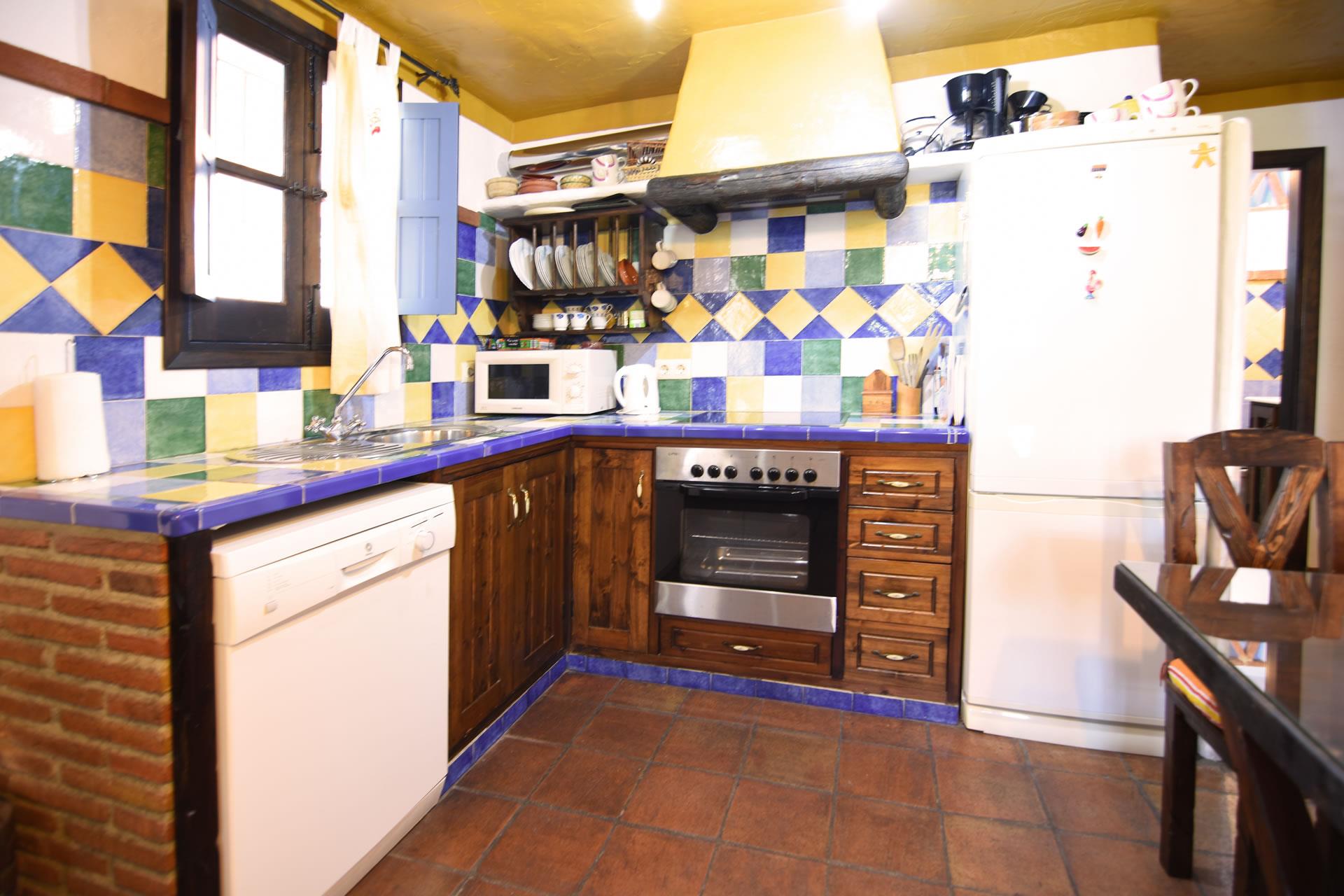The house dates back to the beginning of the 20th century. It served as a stable for the mules needed to work in the countryside. The current owners, Jose Manuel and Pilar, inherited it and fully renovated it in 2006 with great care in the true Andalucian tradition. The thick walls, beamed ceilings, terracotta floors, and Spanish tiles create a delightful ambience. On the ground floor you will find an open plan living room with a large sofa, wood-burning stove and satellite-TV. The kitchen is small but well equipped with a 4-ring vitro hob, oven, dishwasher, refrigerator/freezer and microwave. The washing machine is set outside. There is a double bedroom on this floor and a shower room with WC and basin.