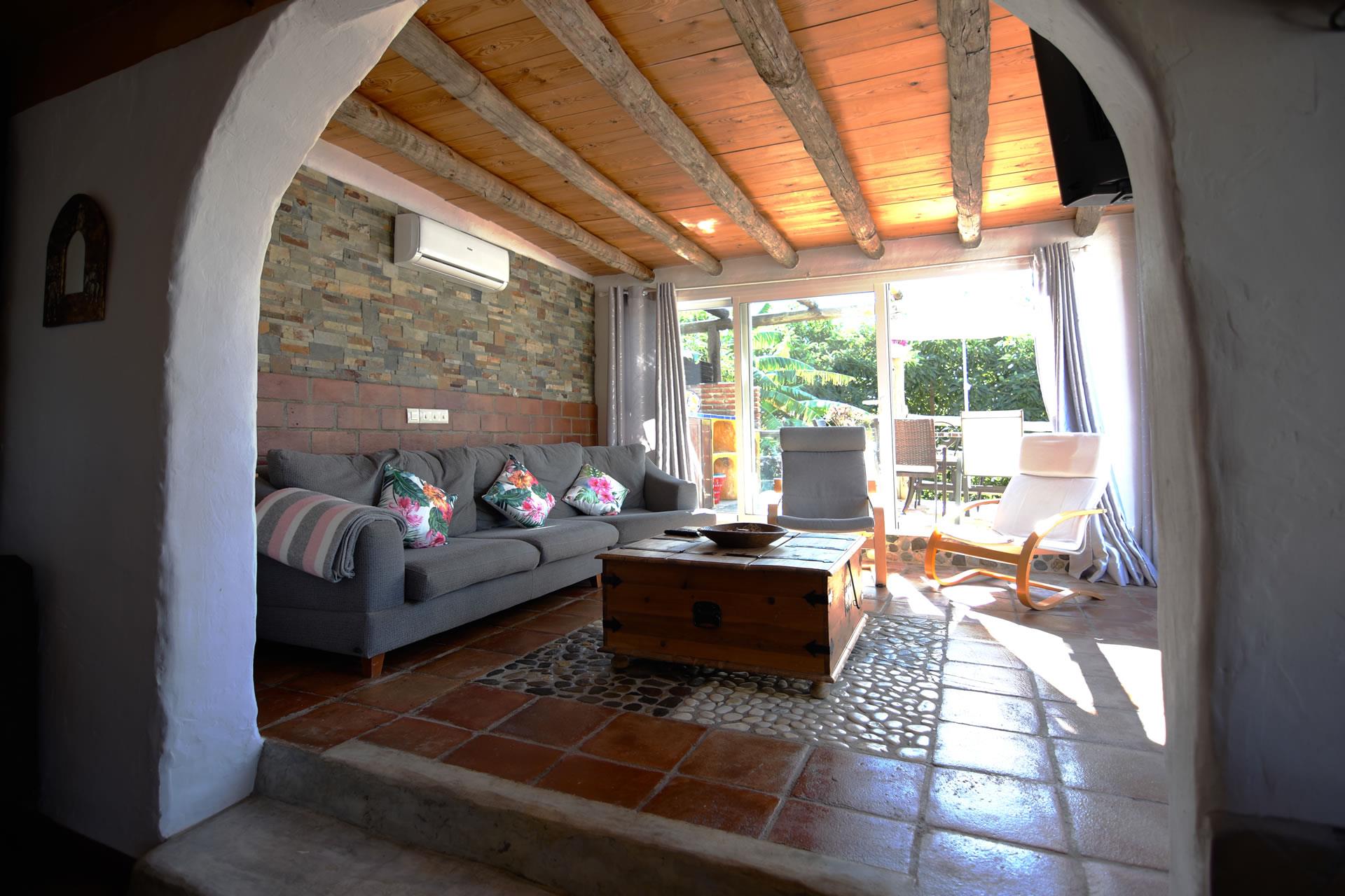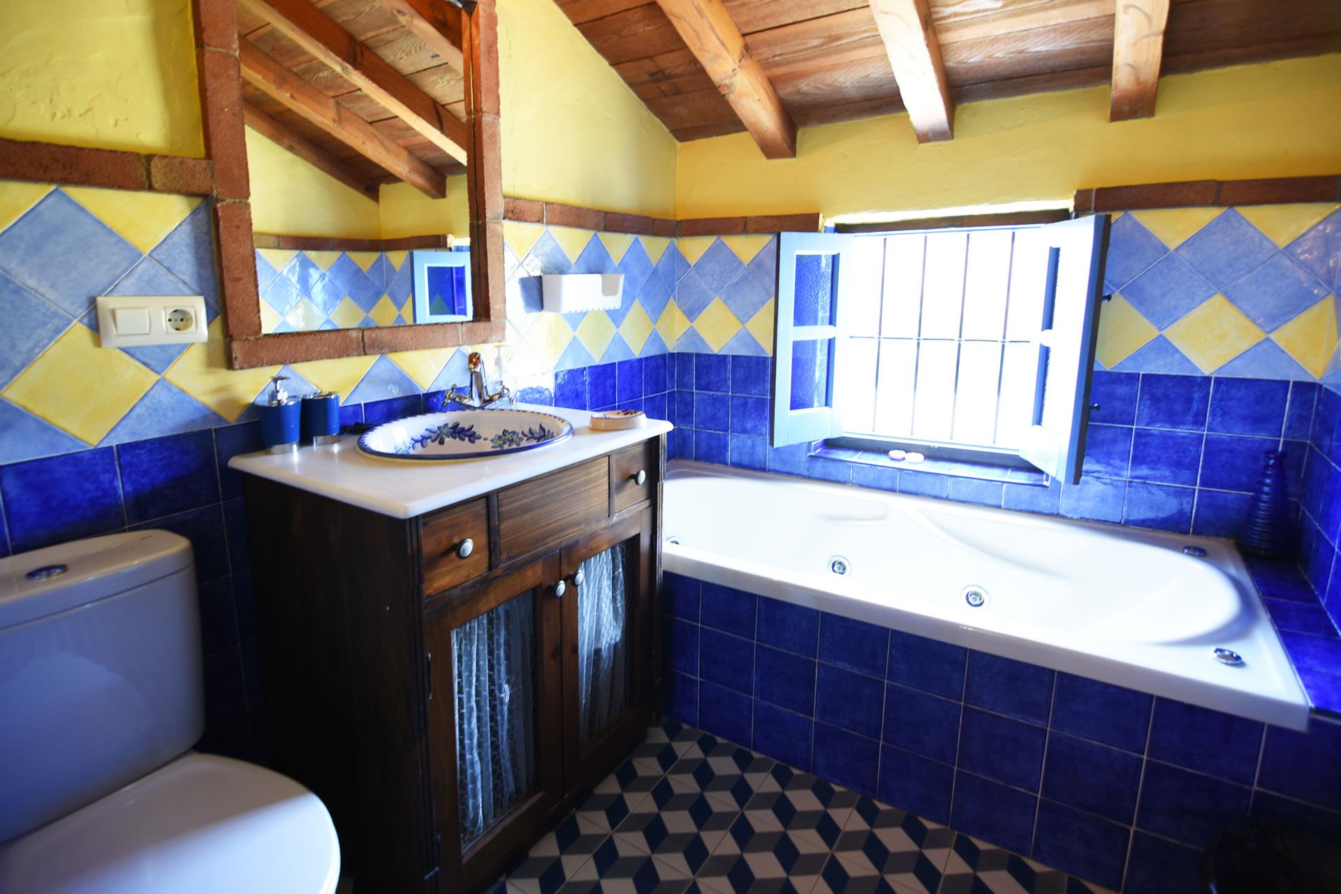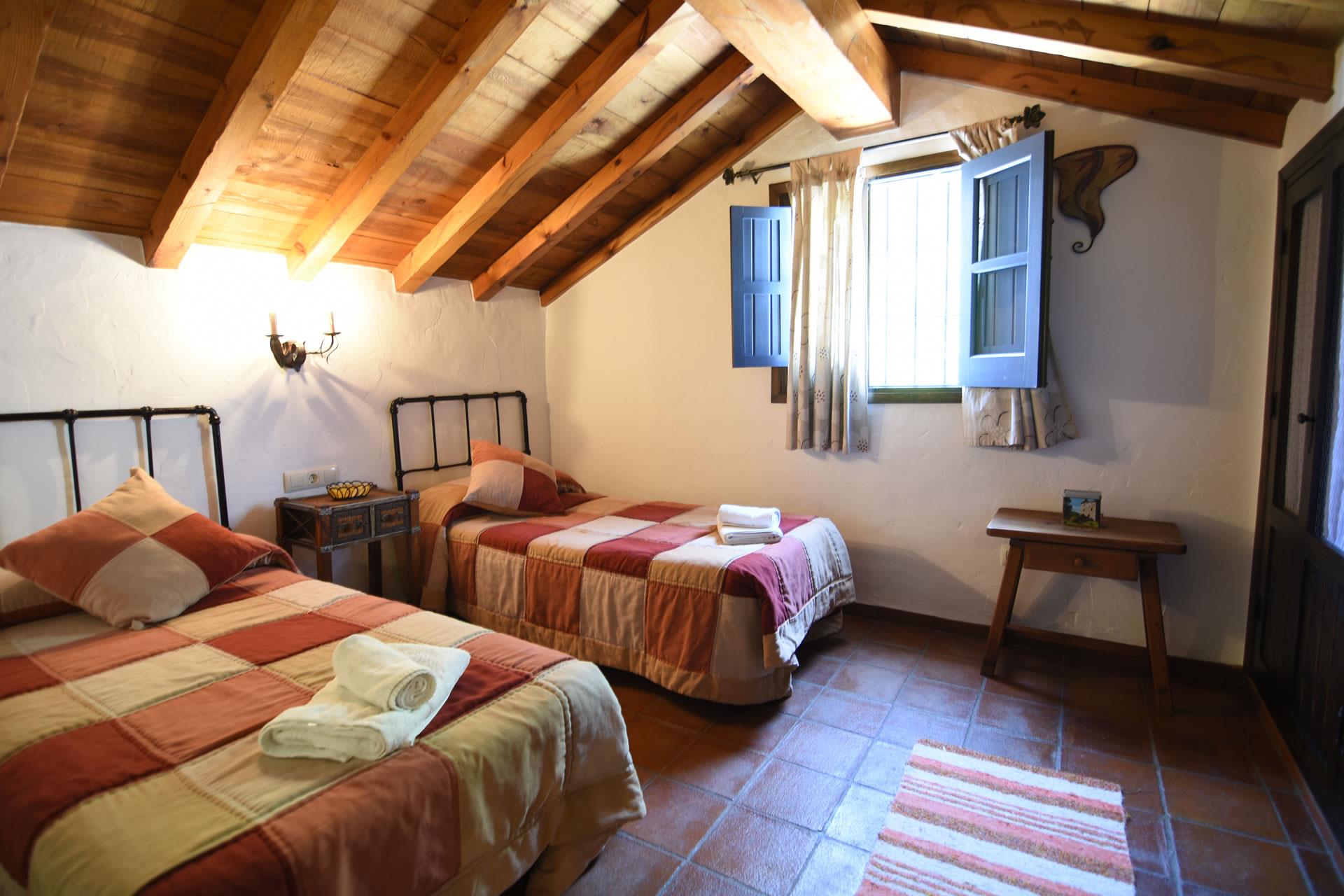 The house dates back to the beginning of the 20th century. It served as a stable for the mules needed to work in the countryside. The current owners, Jose Manuel and Pilar, inherited it and fully renovated it in 2006 with great care in the true Andalucian tradition. The thick walls, beamed ceilings, terracotta floors, and Spanish tiles create a delightful ambience. On the ground floor you will find an open plan living room with a large sofa, wood-burning stove and satellite-TV. The kitchen is small but well equipped with a 4-ring vitro hob, oven, dishwasher, refrigerator/freezer and microwave. The washing machine is set outside. There is a double bedroom on this floor and a shower room with WC and basin.