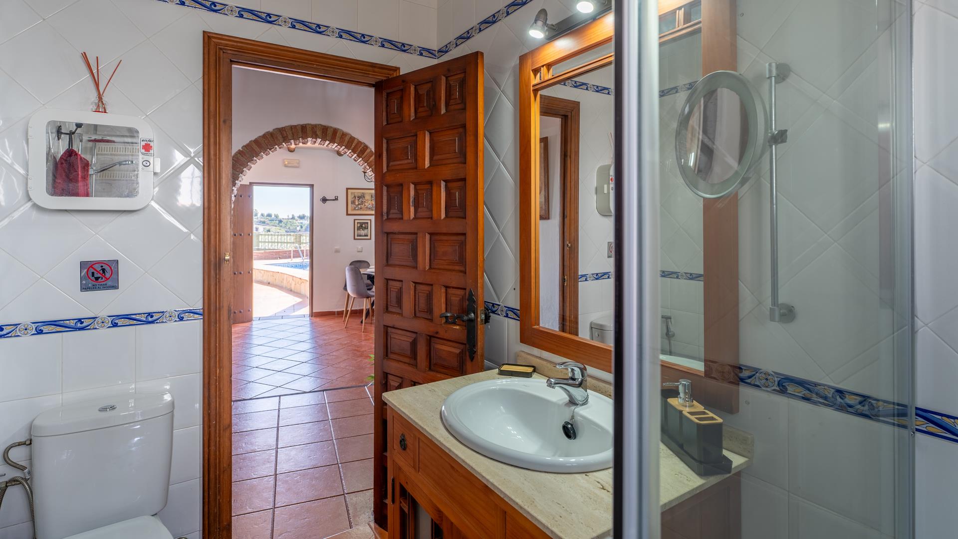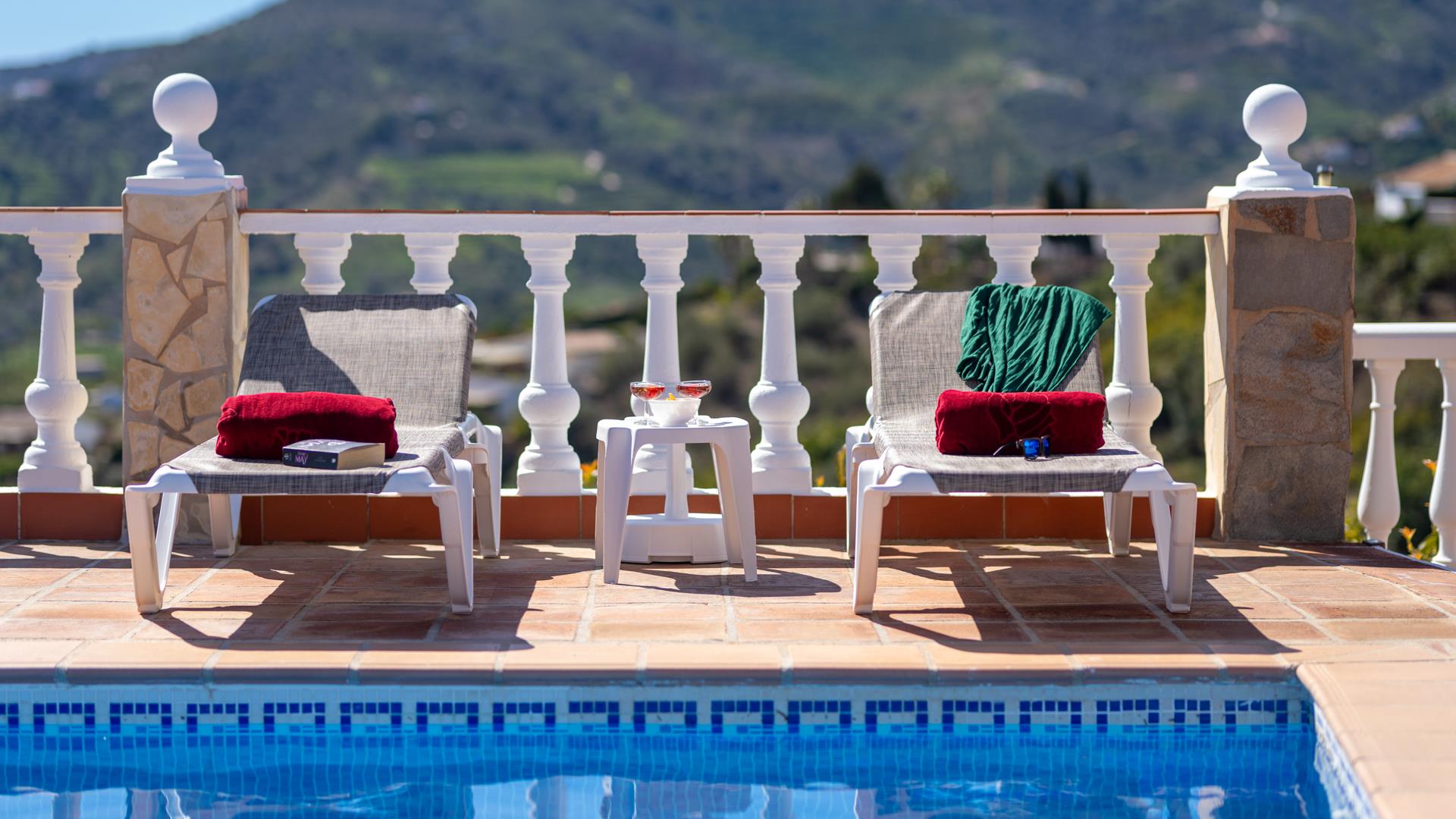 The whitewashed houses of Frigiliana are only a short 10 minute drive away, whilst the beaches of the Mediterranean are close enough for a dip in the ocean (12 km). The villa is also well located for discovering the beautiful cities of Andalusia, like Granada, Málaga, and Antequera. Its beautiful terraces with sun and shade come with patio furniture and sun loungers. From here, you just need to extend your hand to pick an avocado from the adjacent grove. Don’t forget to bring your guacamole recipe! A bathroom downstairs is very convenient for those using the private pool (6.30m x 3.50m long and 1.7m - 2.0m deep).