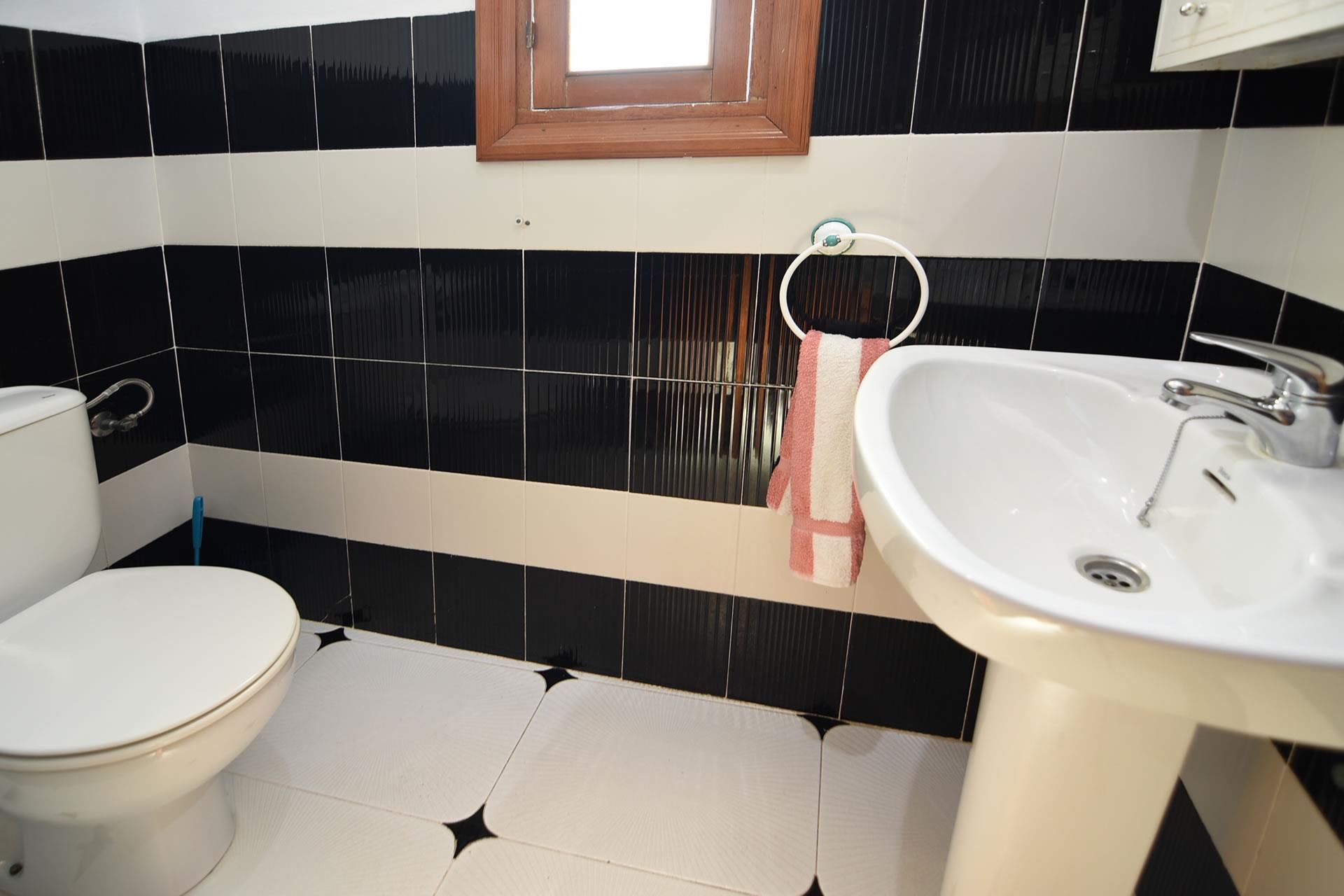 - bathroom with single washbasin and toilet