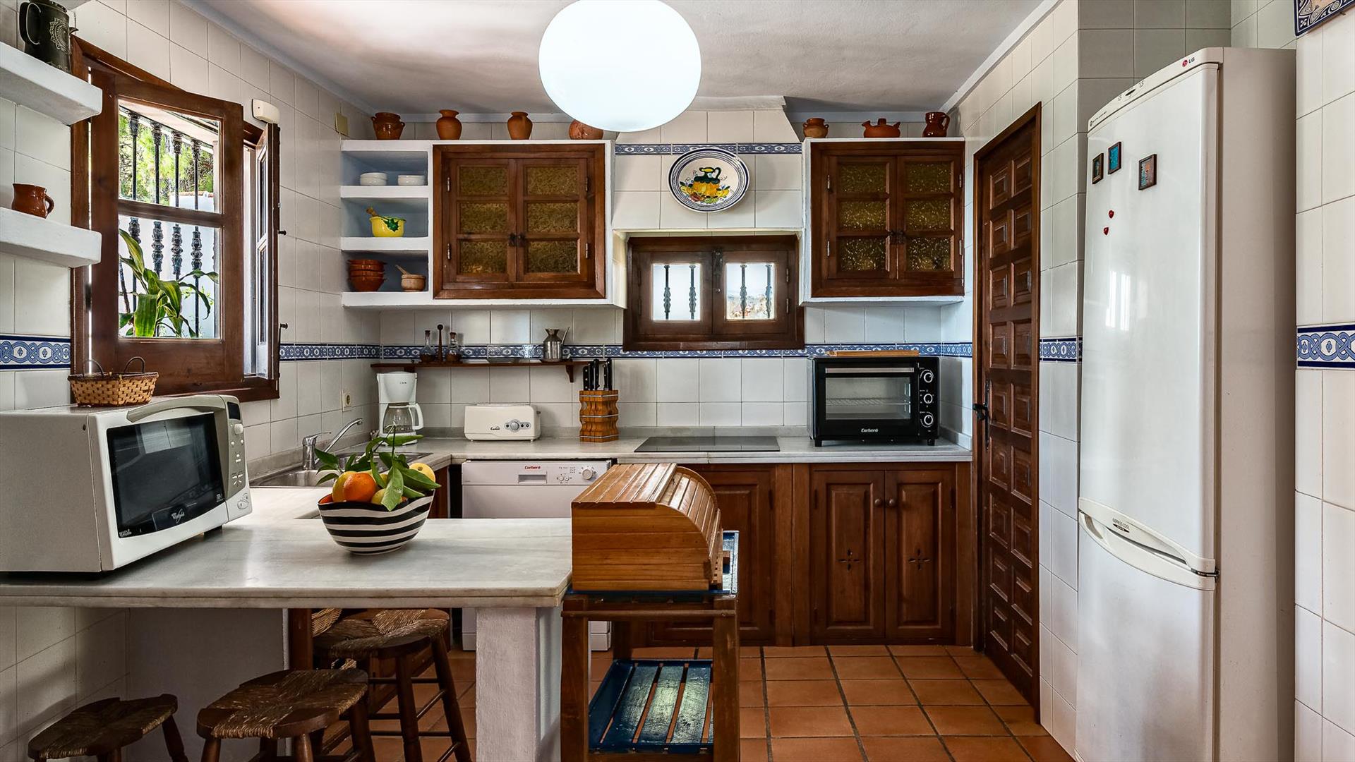 Large and comfortable villa in Frigiliana, Costa del Sol, Spain with private pool for 5 persons. The house is situated in a rural and mountainous beach area and close to restaurants and bars. The villa has 4 bedrooms and 3 bathrooms, spread over 2 levels. The accommodation offers a lot of privacy, a beautiful lawned garden with trees, a wonderful pool, wonderful views of the valley, the countryside and the mountains and beautiful views of the city. Its comfort and the vicinity of sports activities and places to go out make this an ideal villa to spend your holidays in Spain with family or friends.