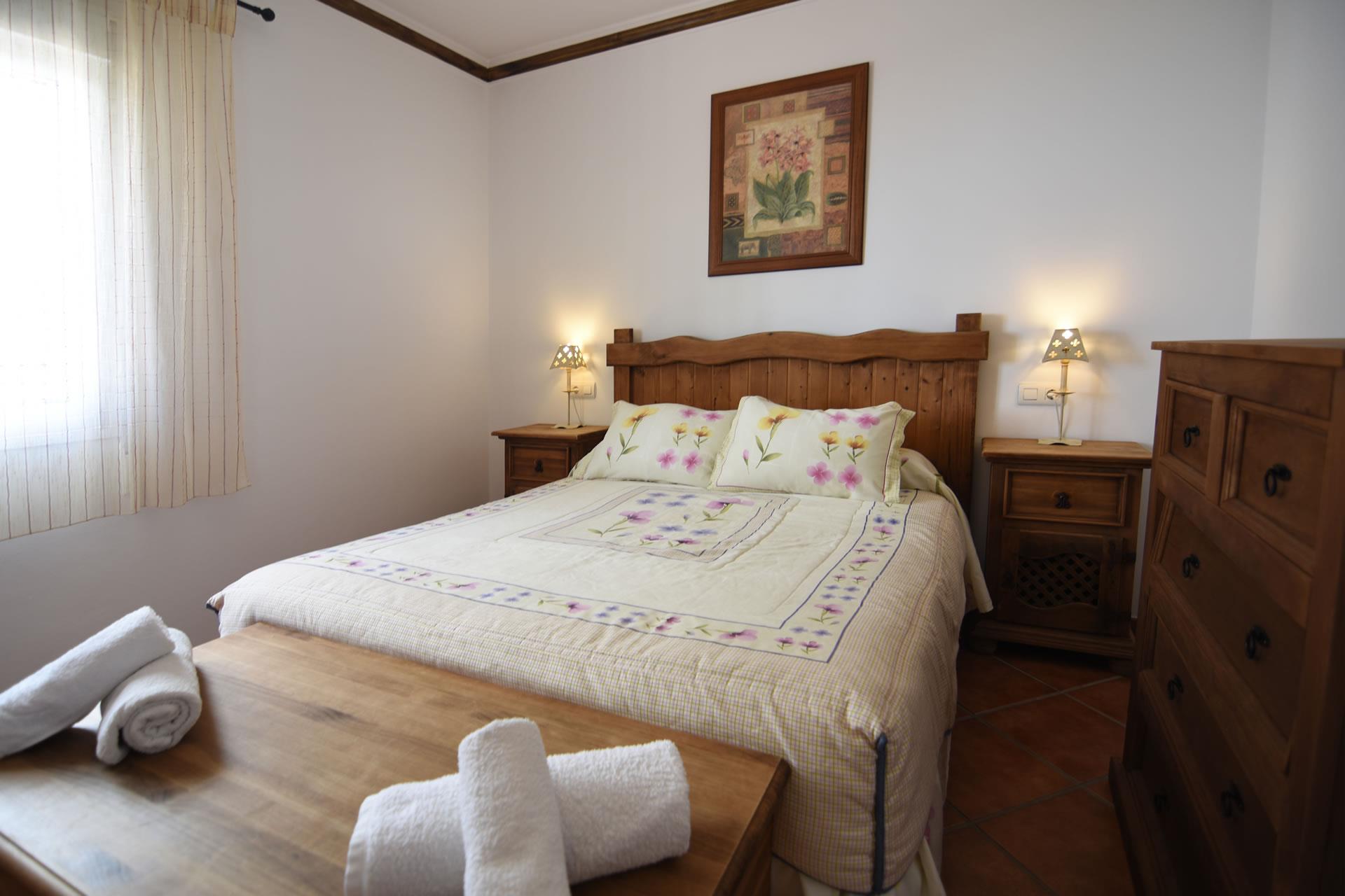 A very comfortable living/dining room is rustically decorated with an open fireplace, dining table for 6, two sofas, and satellite-TV. The kitchen is brand new and very well equipped with a ceramic hob, an electric oven, a microwave, a fridge/freezer, a dishwasher, and a washing machine. The bedrooms sleep 6: one double and two twins, all sharing two full bathrooms with WC, over bath shower, bidet, and basin. One of the bathrooms has a jacuzzi. Each bedroom has air conditioning. A WiFi internet connection and safebox are available (both free of charge).