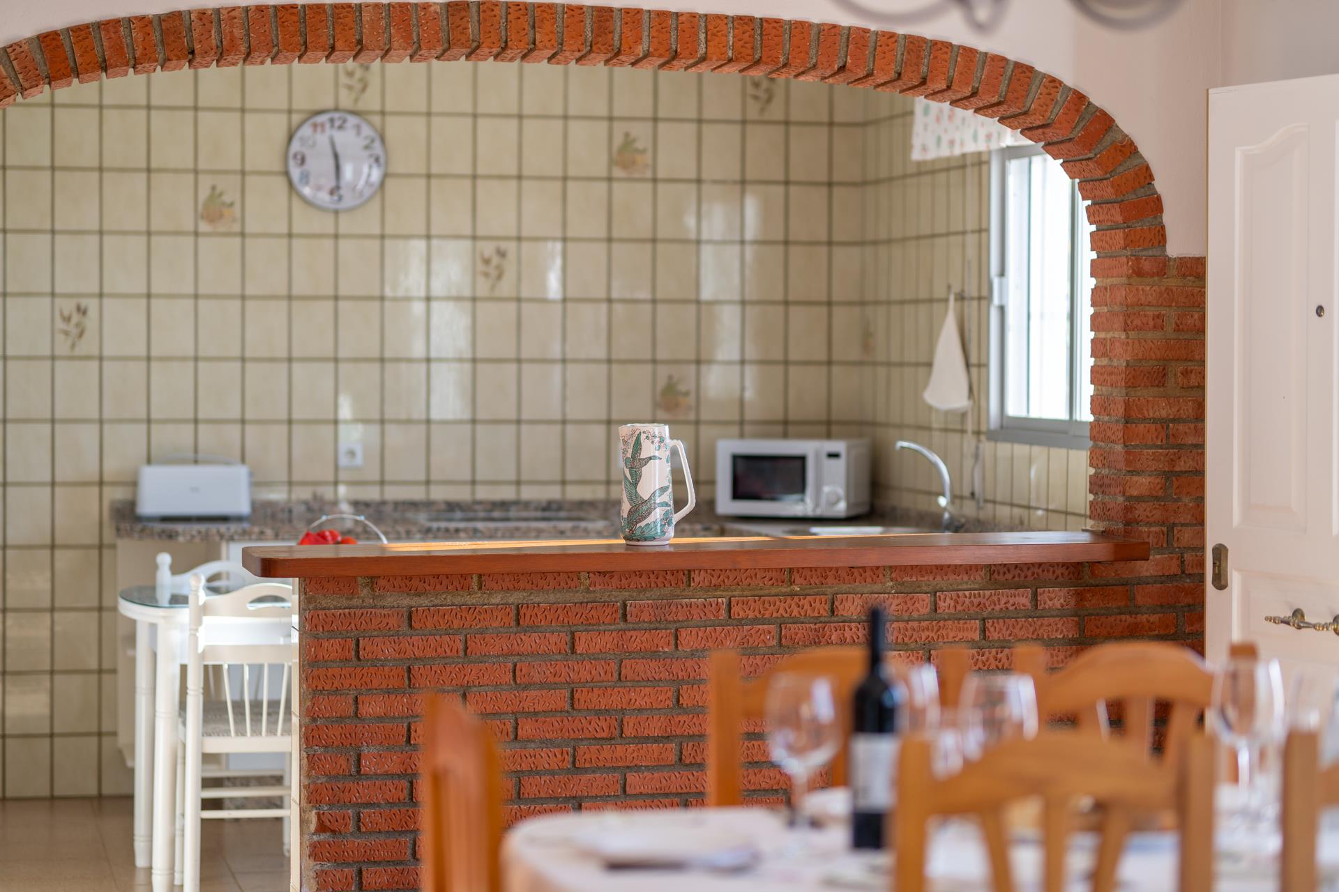The villa is set in the Tablazos area, midway between Nerja (3 km) and Frigiliana; both towns can be reached in 5 minutes by car. This villa offers the best of the countryside in combination with city- and beach-life. The spacious front terrace is one of its highlights and offers breathtaking views on Nerja and the sea—this is the place where you will enjoy your alfresco meals. A barbecue is provided. The private pool (7m x 4m ; 1,5m - 2m deep) has sun loungers and offers the same splendid views as the front terrace. At the back of the house, the entrance leads through an avocado field; hosts are allowed to pick the fruits for their own use.