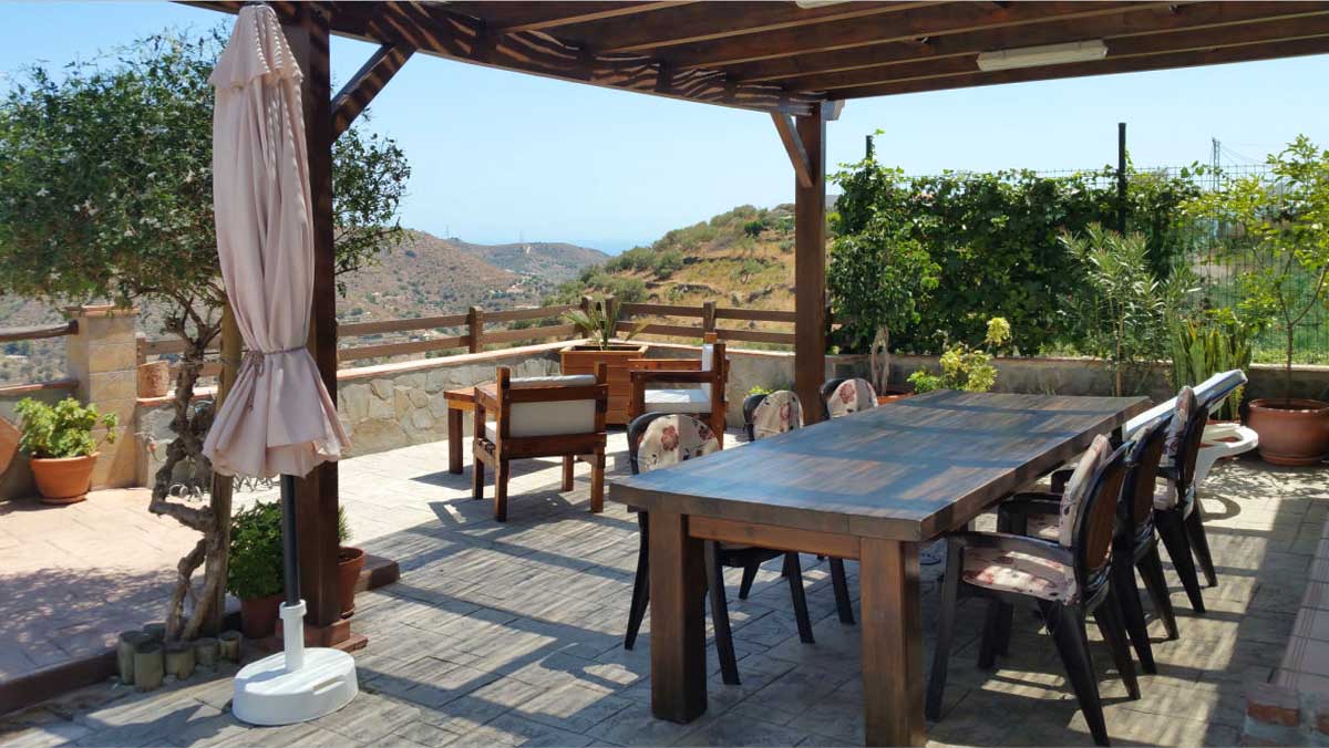 This villa occupies a hillside position at 1,5 km from Torrox and 6 km from the beaches and bustling town of the Torrox Costa. The villa is aproached by an uphill concrete track, whilst the last 400m is a rough road, in reasonable conditions. The spacious terraces offer good privacy with a swimming pool of 8 by 4 metres. At night, the pool can be lit, for a romantic swim under the stars! Adjacent to the pool, there is a utility room with wc and wasking machine. For your outside meals, we recommend the covered patio terrace equipped with a lovely wooden table. Built-in barbecue, patio furniture and sun loungers are provided. There is also a ping-pong table for entertainment of the guests. If you're at all looking to get away for a day trip from this lovely place, then visit Granada and experience the grandeur of its Alhambra Palace. The villa has a private parking place.