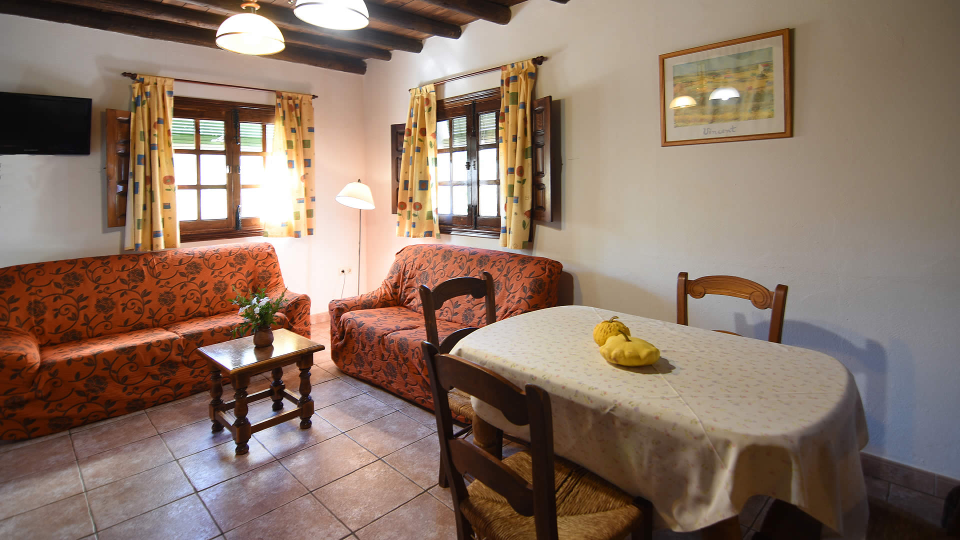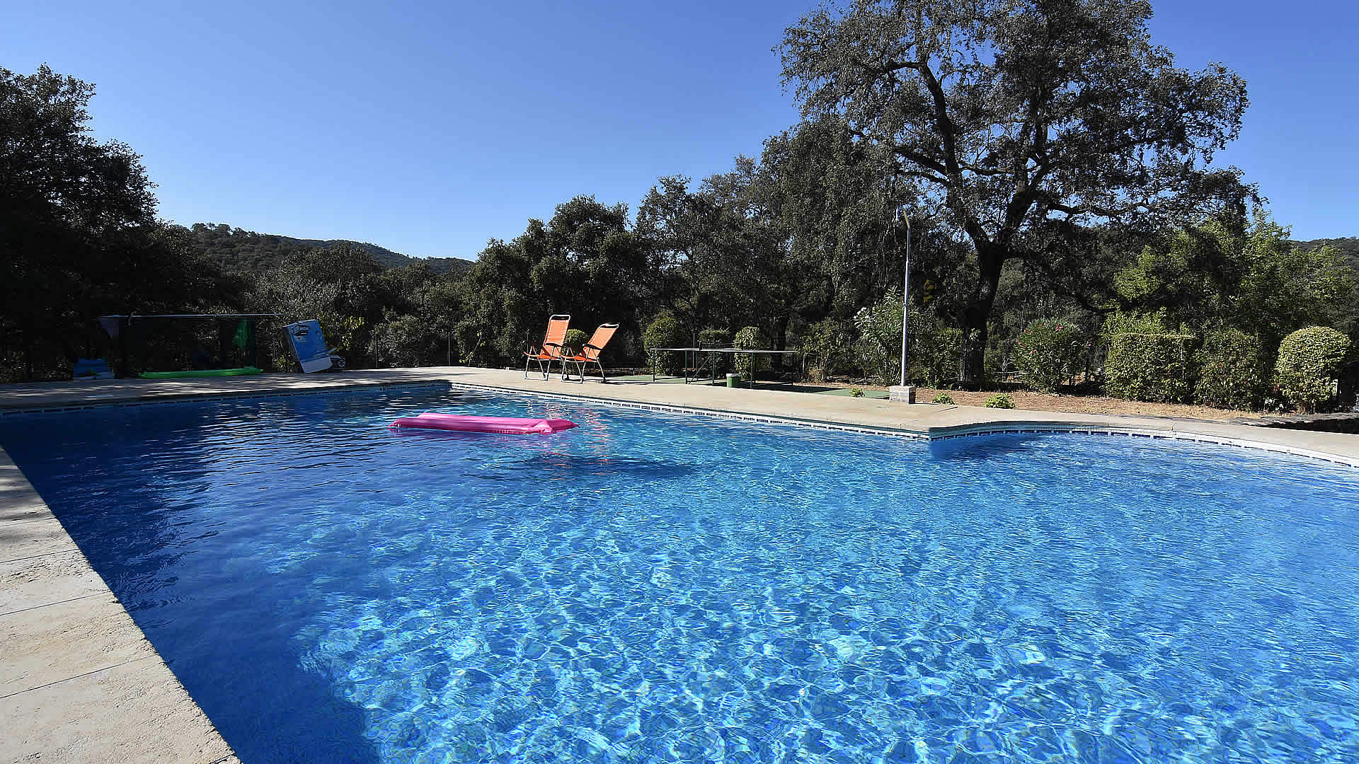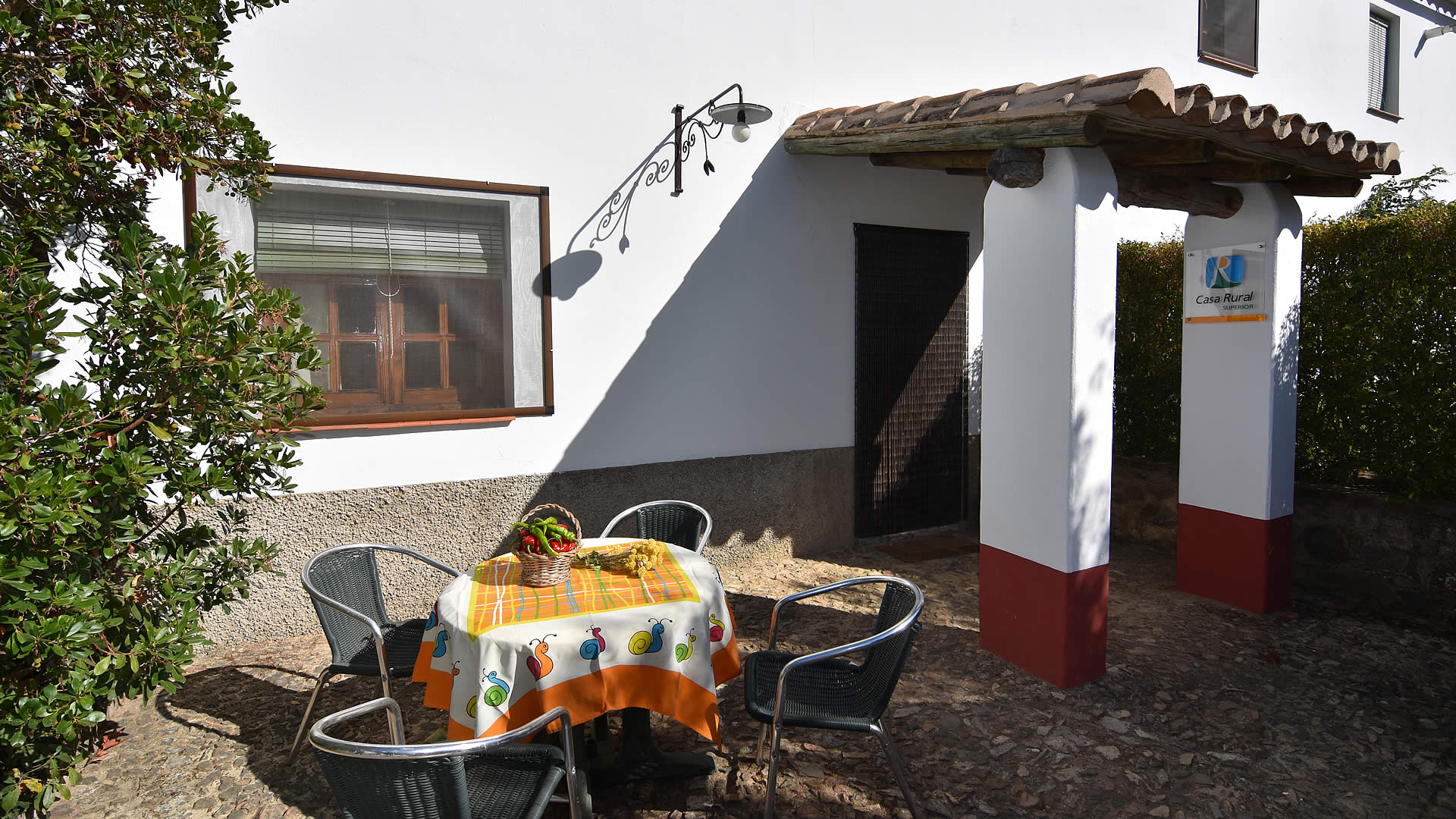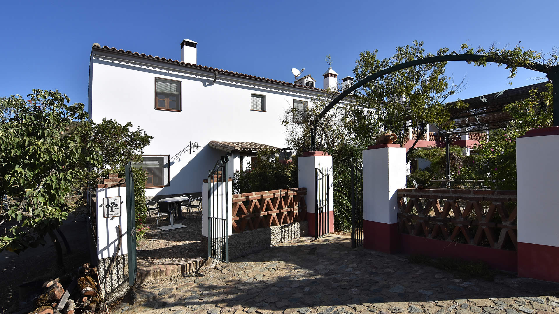 A country road leads to this farmhouse set amidst cork and holm oaks. The house has its own garden area including garden furniture and barbecue. The pool is for shared use with the Cortijo Aracena 004 and the owners. Their children, when not going to school, spend their time with friends playing on the farm and around the pool which makes it easy to meet new friends. For shopping or a tapa bar, the nearby village of El Repilado is only 5 minutes by car and provides the basic needs, whilst the bigger town of Cortegana is about 10 km away. Its central location within the the Sierra de Aracena Natural Park allows you to discover all the treasures of the park. Don’t forget to sample the excellent gastronomy of the region, famous for its "jamon de pata negra" and other products made from the Iberian black pig. Armando and Lola were born and raised in the area and can provide you with wonderful suggestions for walking and horse or bike riding! It is also possible to experience the organic farm: Armando raises Iberian pigs, makes his own "jamón" and takes care of the ecological vegetable garden, whilst his wife Lola works on products such as goat cheese and will be your gracious host during your stay. Lola also takes care of your reception and will accompany you to the house.