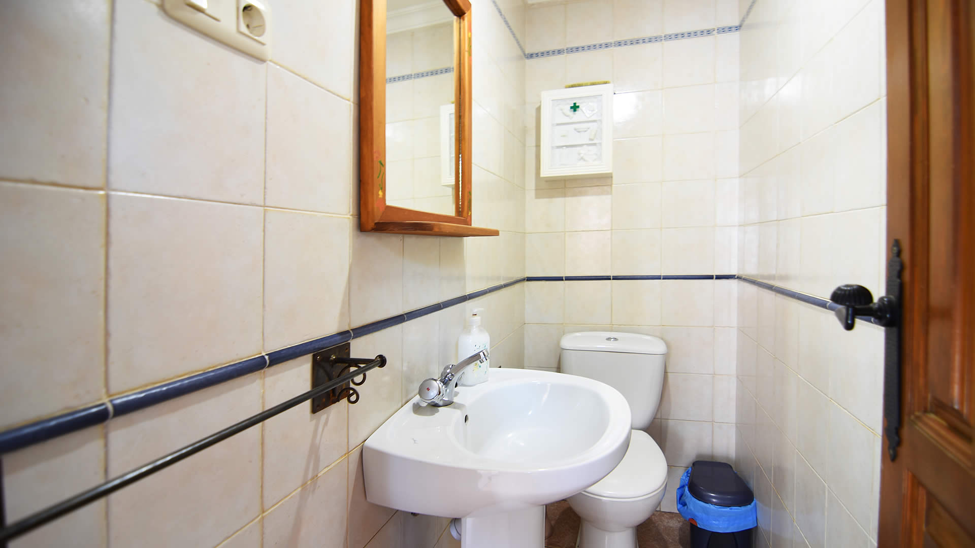 - bathroom with single washbasin and toilet