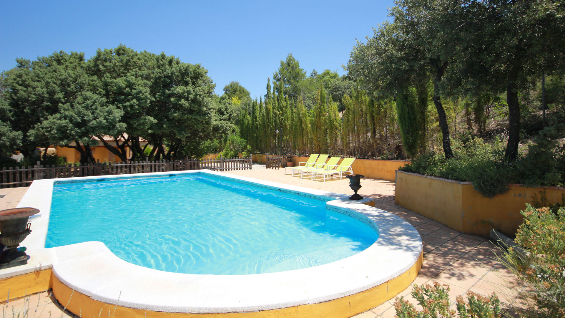 For your alfresco dinners, a nice corner with patio furniture is set under the shade of oak trees; a barbecue is provided. Adjacent, you will find the tempting private pool with sun loungers.