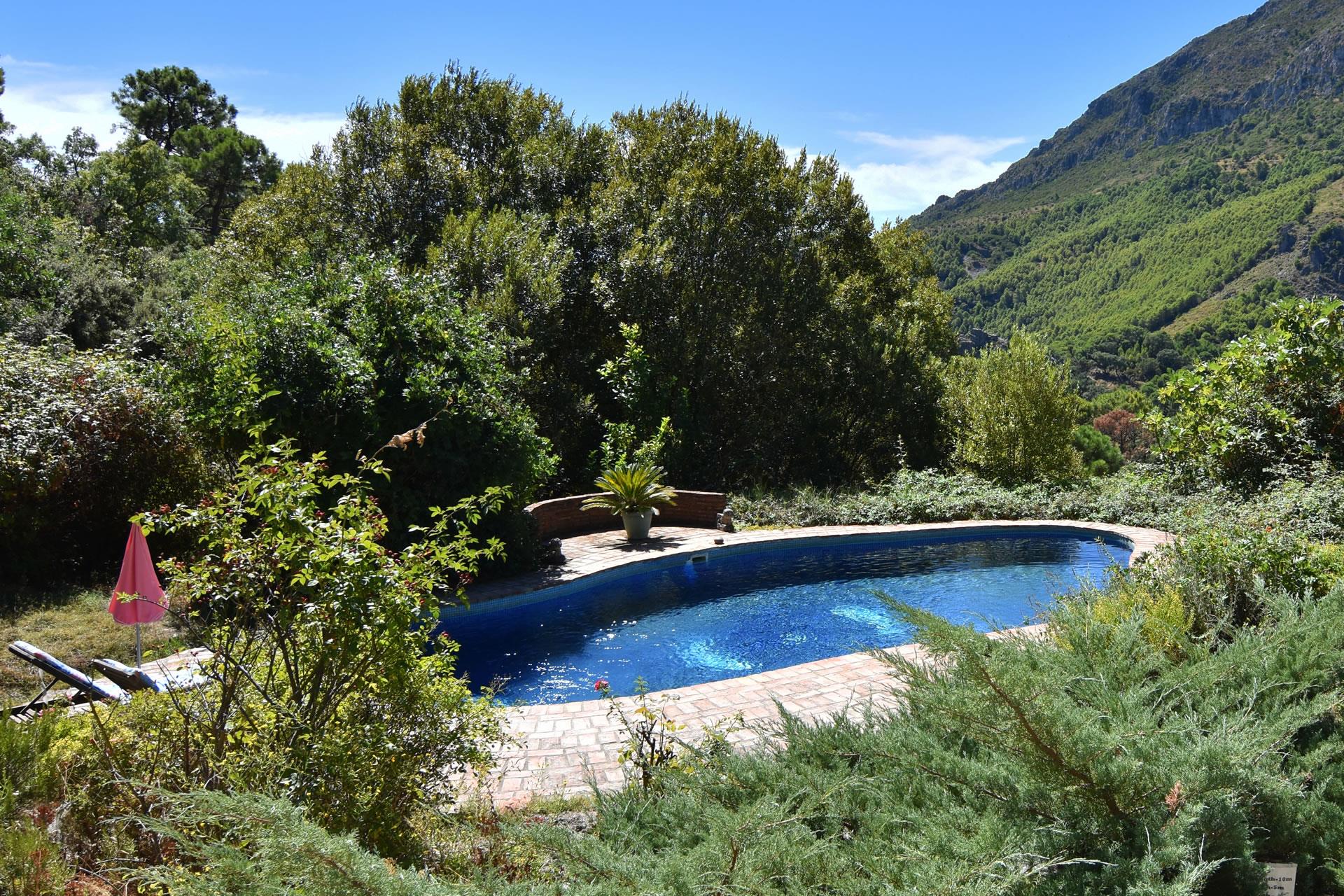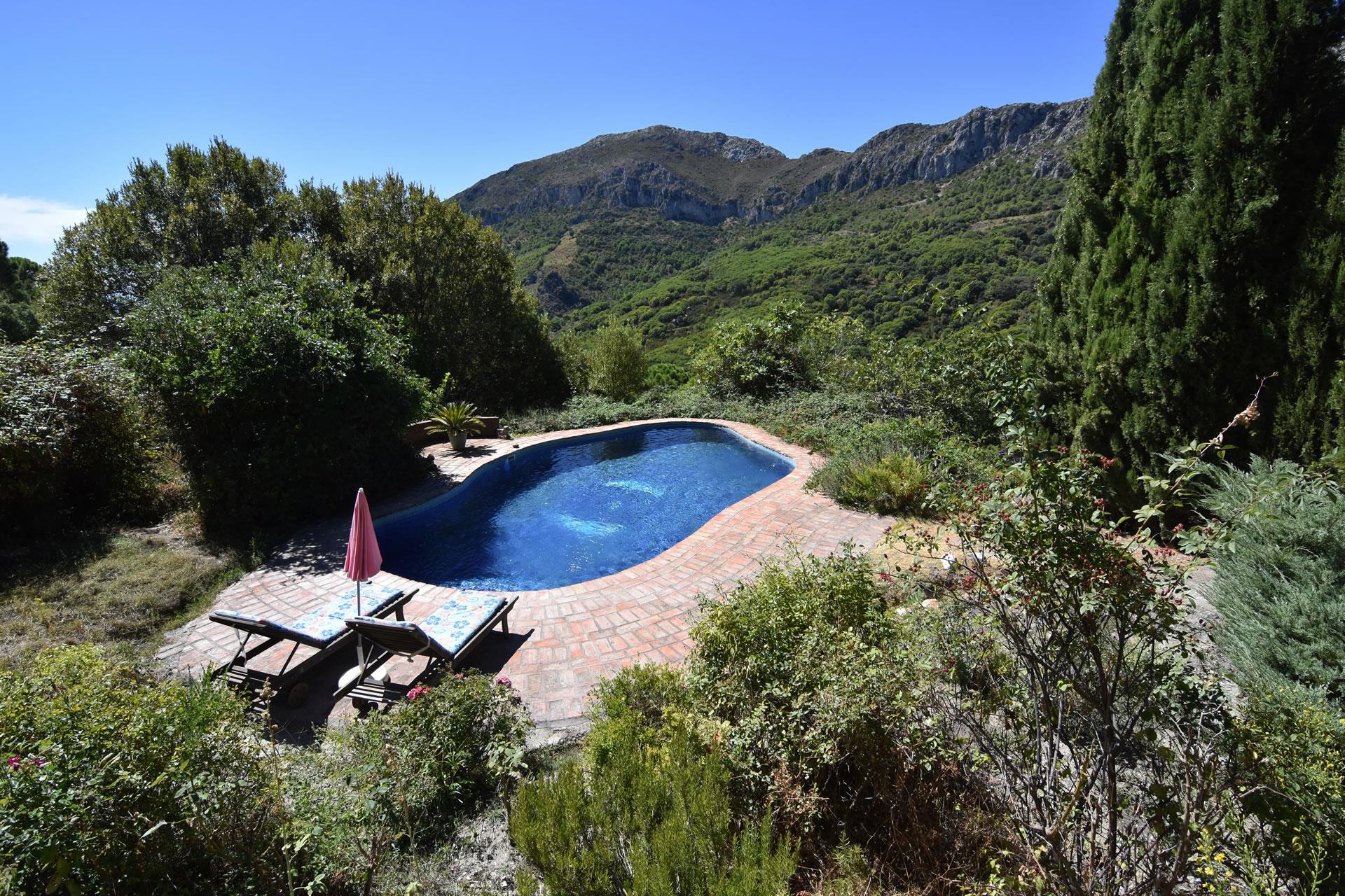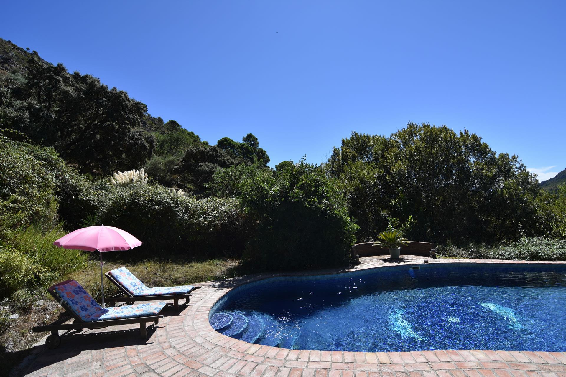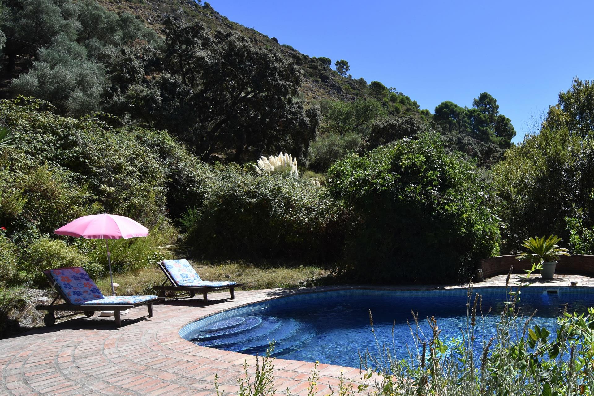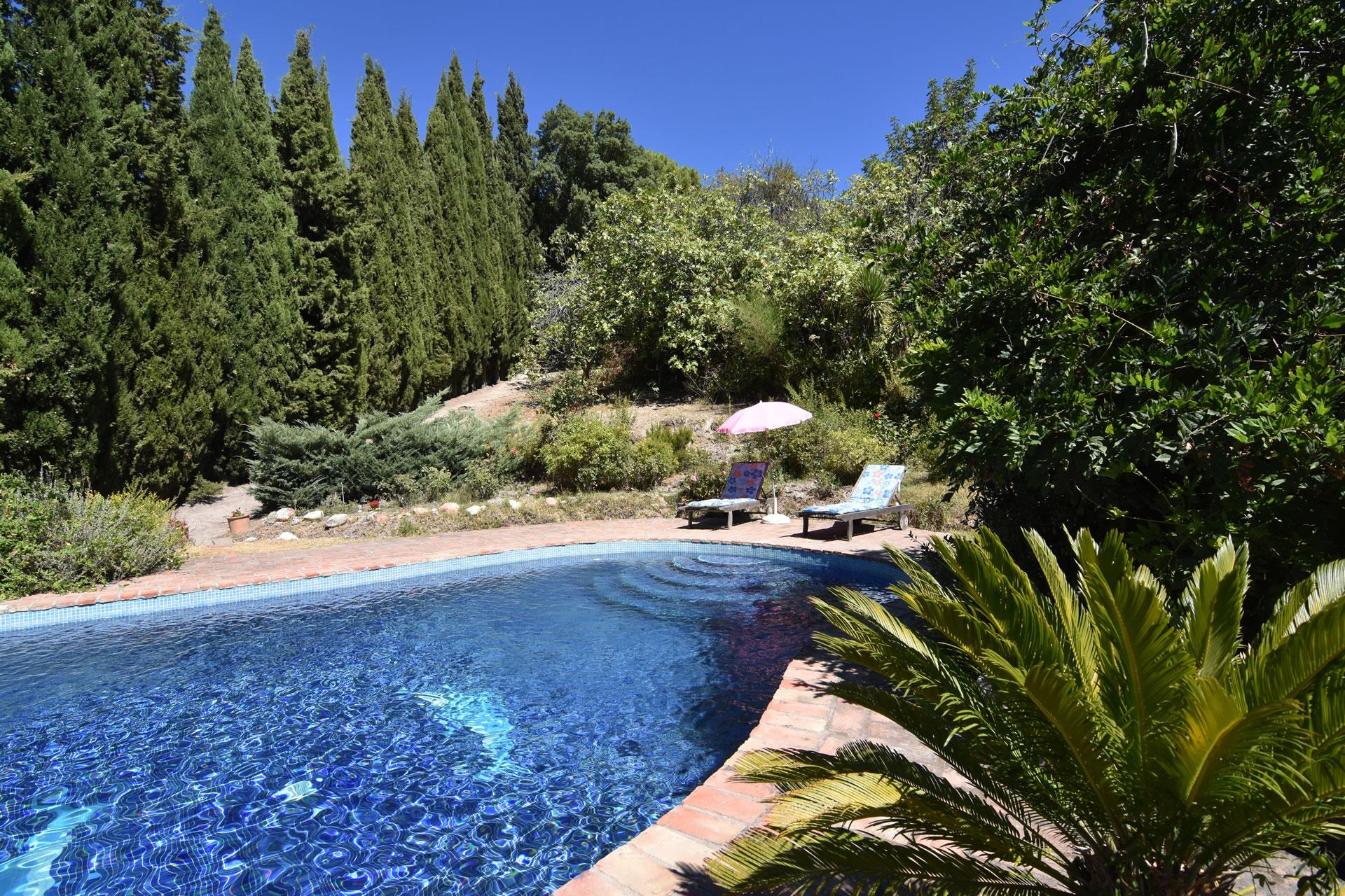 The cottage is reached by a part concrete/part dirt road (in good condition) and set in a glorious 12-acre farm estate with lush forests of cork oak, scented pines and chestnuts, wild flower meadows and delightful gardens. The private swimming pool (10m x 5m; 1,5m deep) comes with teak sun loungers and is surrounded by lovely gardens and tall cypress trees. It harmonizes beautifully in the landscape and looks like a natural spring where you may laze on sunny afternoons enjoying pristine blue skies with eagles gliding overhead.